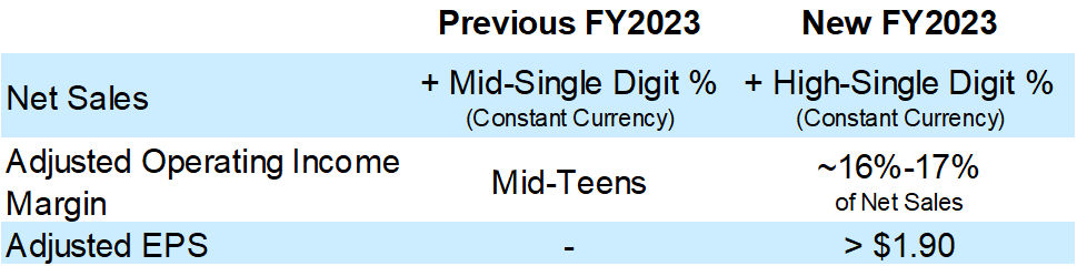 For the year, Net Sales were up 19% as reported, and 18% in constant currency, versus the prior year. Reported Operating Income was $730 million, an increase of $355 million, and Adjusted Operating Income was $763 million, an increase of $322 million. Reported Earnings Per Share were $2.53, an increase of $2.18 per share, which includes a benefit of $1.51 resulting from the release of valuation allowances on certain deferred tax assets, and Adjusted Earnings Per Share were $1.30, an increase of $0.76 per share.